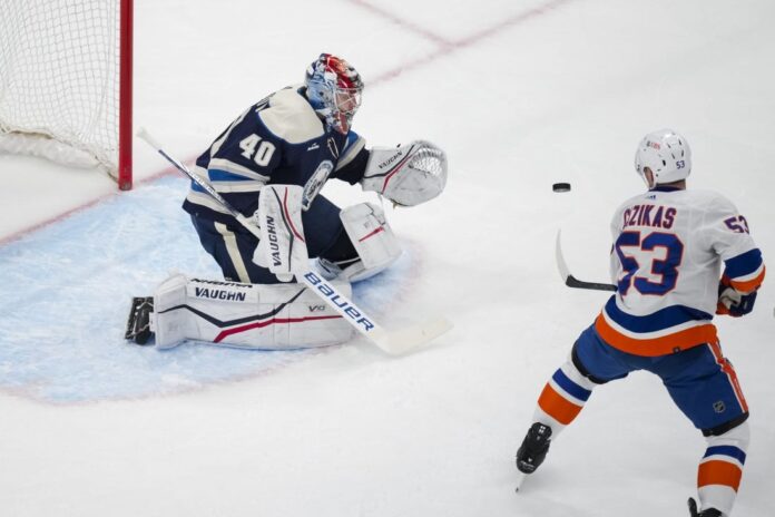A turnover by Marchenko led to Horvat’s goal at 13:48. Romanov picked Marchenko’s cross-ice pass in the neutral zone and dished it to Barzal. The Islanders center then passed the puck beyond a sliding Columbus defenseman Damon Severson to Horvat, who wound up and fired a shot over Tarasov’s glove.