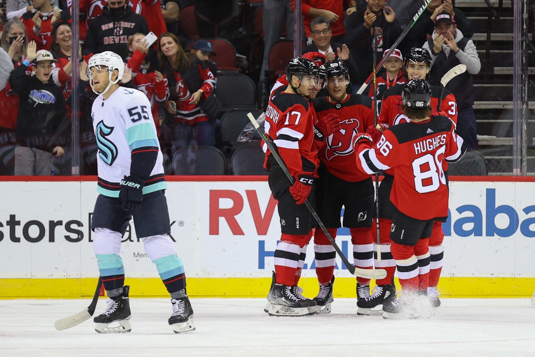The first game between the teams was a feisty one that featured 76 penalty minutes, including 58 in the second period. Seattle’s Jeremy Lauzon and New Jersey’s Mason Geertsen each earned 15 minutes of penalties after tussling 1:55 into the middle period.