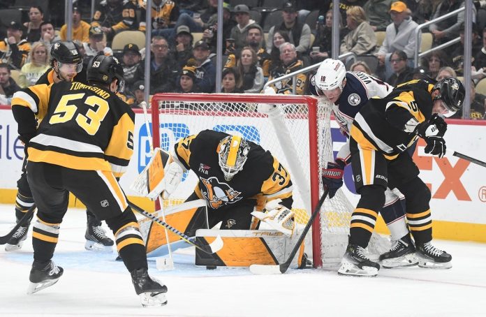 Coyle tied it with 4:16 left in the first when he put in a loose puck in the crease. Pittsburgh challenged that Coyle interfered with Silovs, but the goal was upheld for Coyle’s first goal of the season and first as a Blue Jacket.