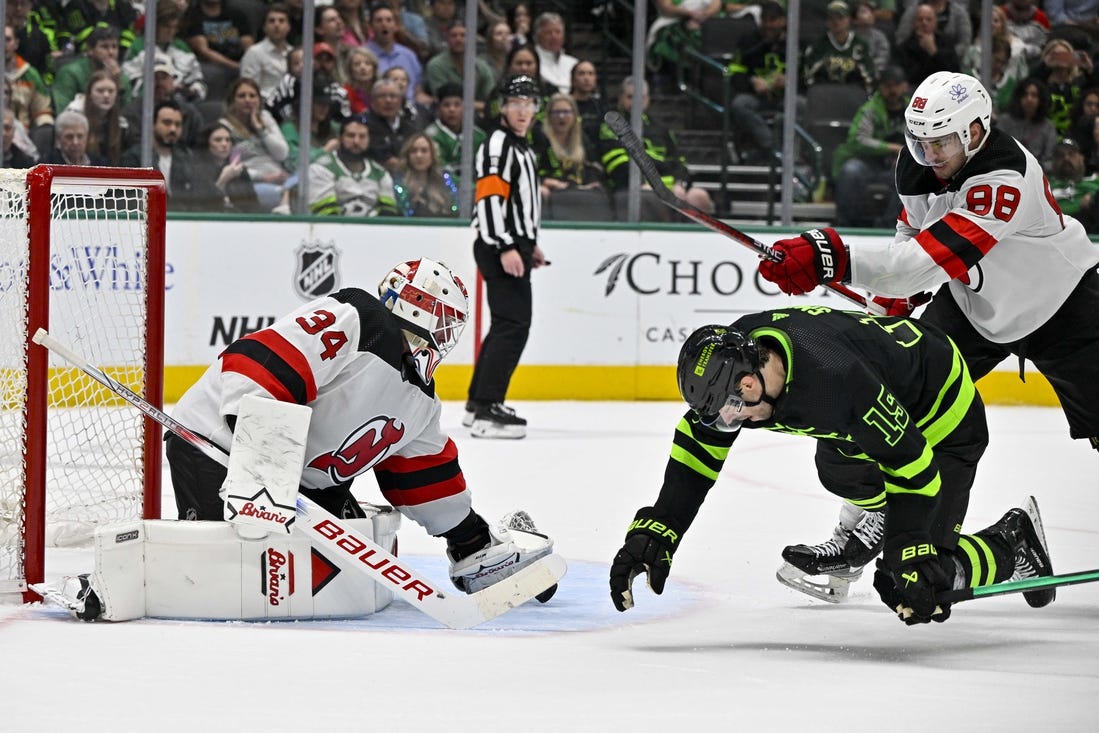 Johnston gave the Stars a 1-0 lead just 15 seconds into the game, splitting a pair of Devils and scoring on a wrist shot from the slot.
