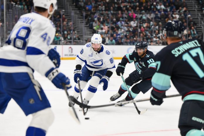 Lightning defenseman Victor Hedman missed his second consecutive game with a lower-body injury despite participating in the morning skate. Seattle forward Yanni Gourde, who won two Stanley Cups with the Lightning before being selected by the Kraken in the 2021 expansion draft, missed his second straight game with a lower-body injury.