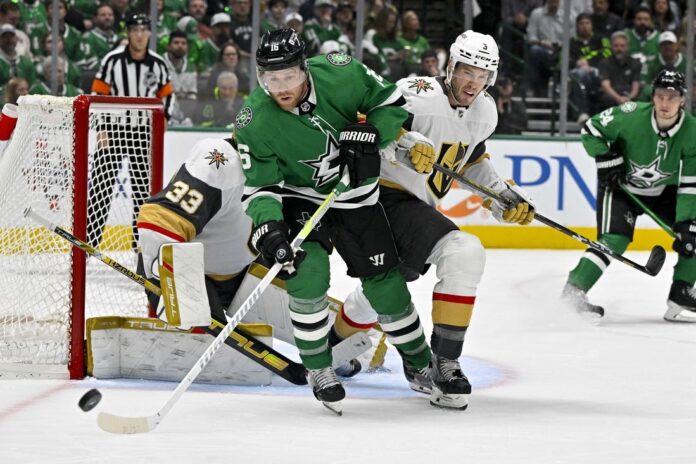 Vegas took a 1-0 lead four minutes into the first period on a power-play goal by Stone, who deflected Noah Hanifin’s point shot past Oettinger’s glove side for his second goal of the series and 36th of his postseason career.