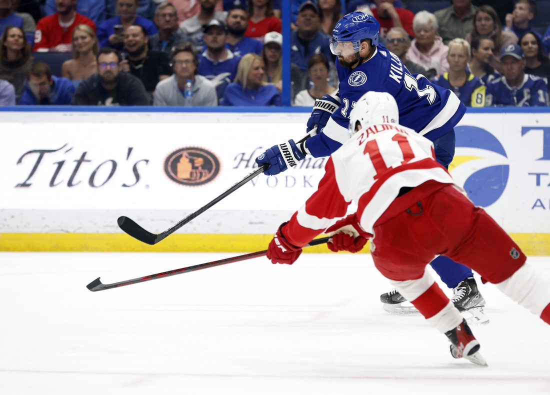 Sundqvist started the spurt by sweeping in his seventh goal on a rebound at 4:20, and Vrana made it 2-1 at 6:34 just after Detroit’s first power play expired. Raymond’s steal and score at 8:17 put his club up 3-1.
