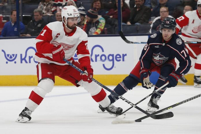 The Wings soon added two power-play goals within a minute to take a 4-0 lead. Larkin scored the first of those goals, as he took a pass from Moritz Seider near the blue line and scored on a backhander. That came after Boone Jenner was called for cross-checking.
