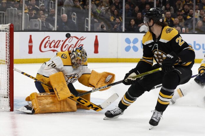 The score remained tied through 40 minutes after the teams traded goals in the second as well. Nashville had a major chance for more, but Boston killed Jakub Lauko’s four-minute penalty for high sticking.
