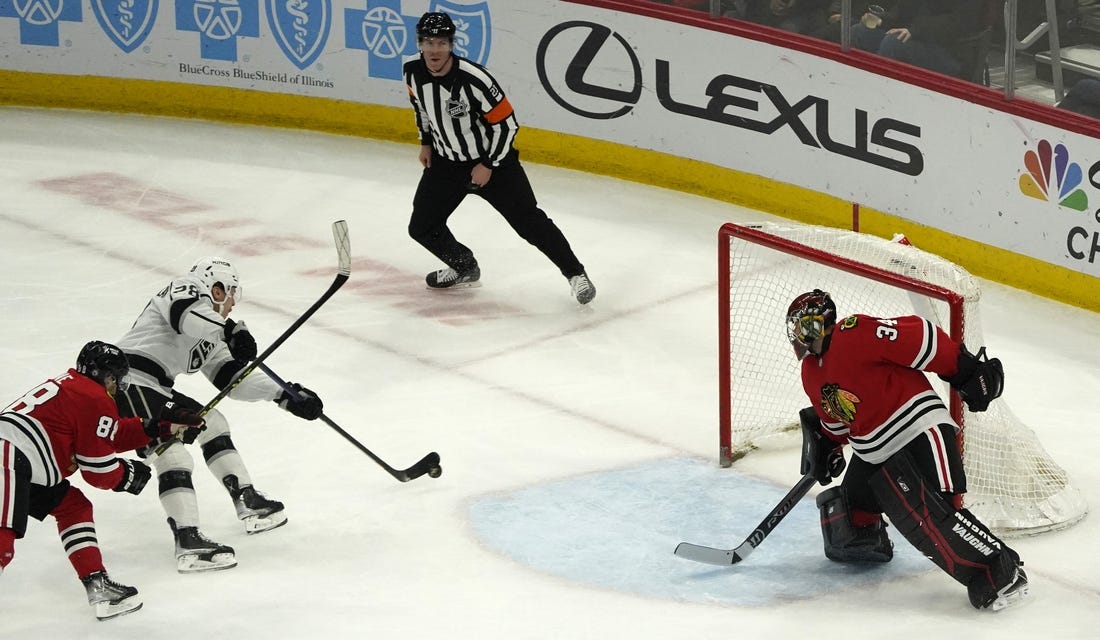 Jaret Anderson-Dolan scored both goals for the visiting Los Angeles Kings in a 2-1 win against the Chicago Blackhawks on Sunday evening.