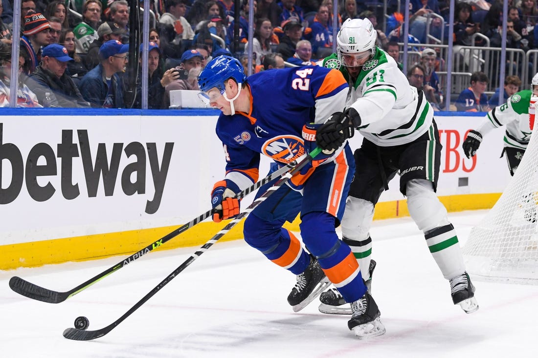 A tripping penalty on Radek Faksa generated the power play that yielded Lee’s goal almost exactly 10 minutes later. Lee was battling with Stars defenseman Esa Lindell for position in front of Oettinger before Noah Dobson passed to Brock Nelson. Oettinger then darted to try and cover Nelson, whose shot glanced off the stick off Lee and trickled across the goal line before Lee could nudge it over with 6:21 left.