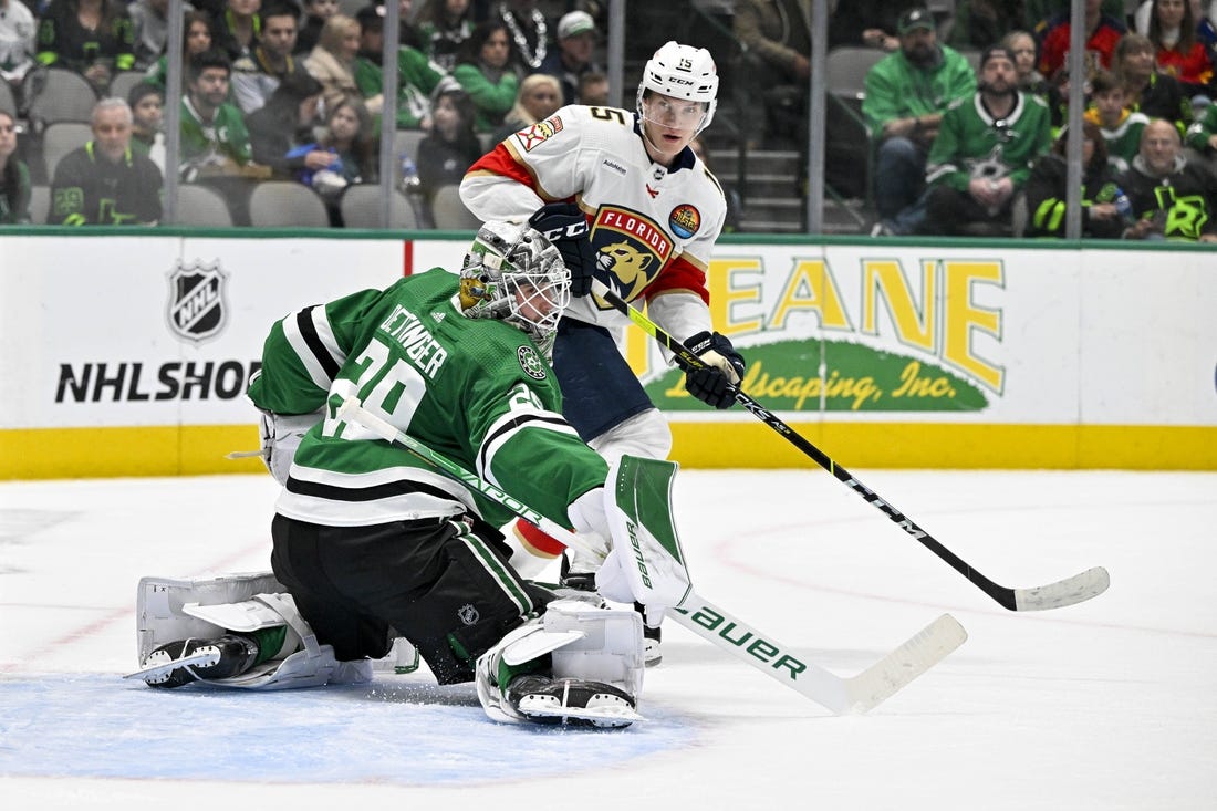 The Stars went up 2-0 at 10:03 of the second period. On the power play, Lundkvist one-timed Wyatt Johnson’s pass by Panthers goaltender Spencer Knight (29 saves) for his fourth of the season.