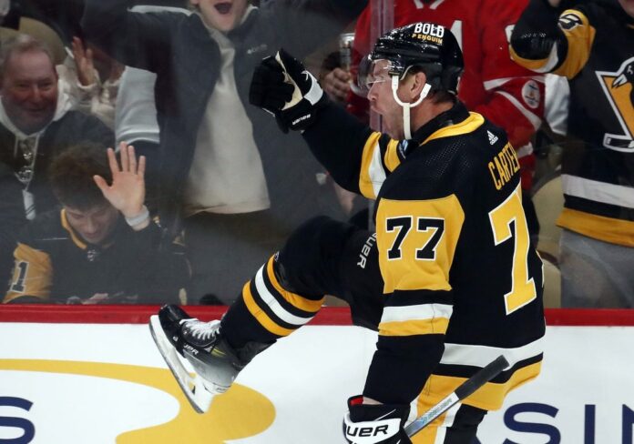 After a scoreless second, Carter struck again at 4:23 of the third, this time with the Penguins’ second power-play goal. With his back to the net, he tipped in a shot from the center point by Kris Letang for a 3-2 lead.
