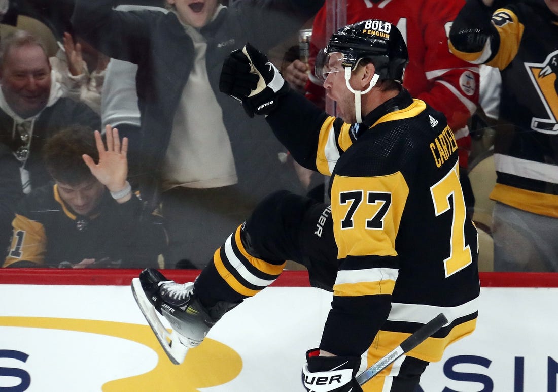 Carter tied it at 16:54 with Pittsburgh short-handed. Sprung on a breakaway by Drew O’Connor, Carter deposited a backhander over Ingram’s blocker.