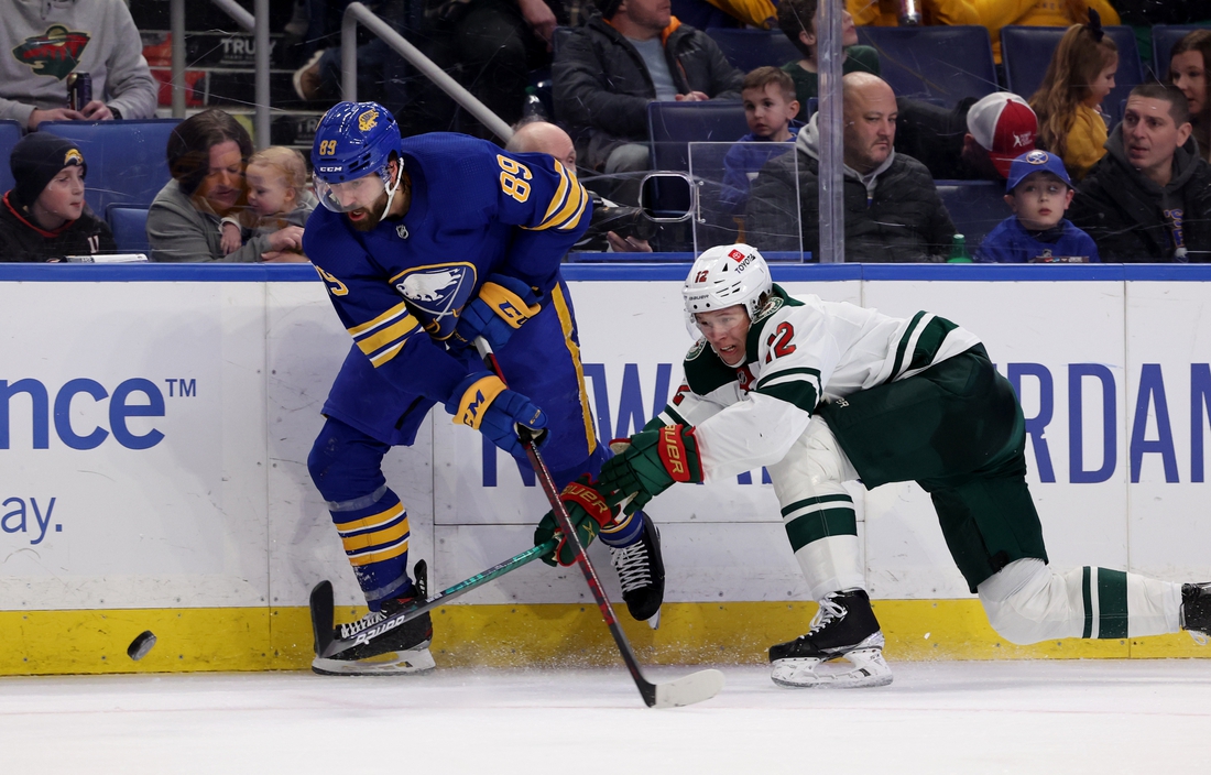 After Victor Olofsson increased Buffalo’s lead on an empty-net goal with 1:06 left, Minnesota closed to within a goal when Kirill Kaprizov (two goals, one assist) one-timed a shot from the high slot with 31.7 seconds left for his 26th of the season.