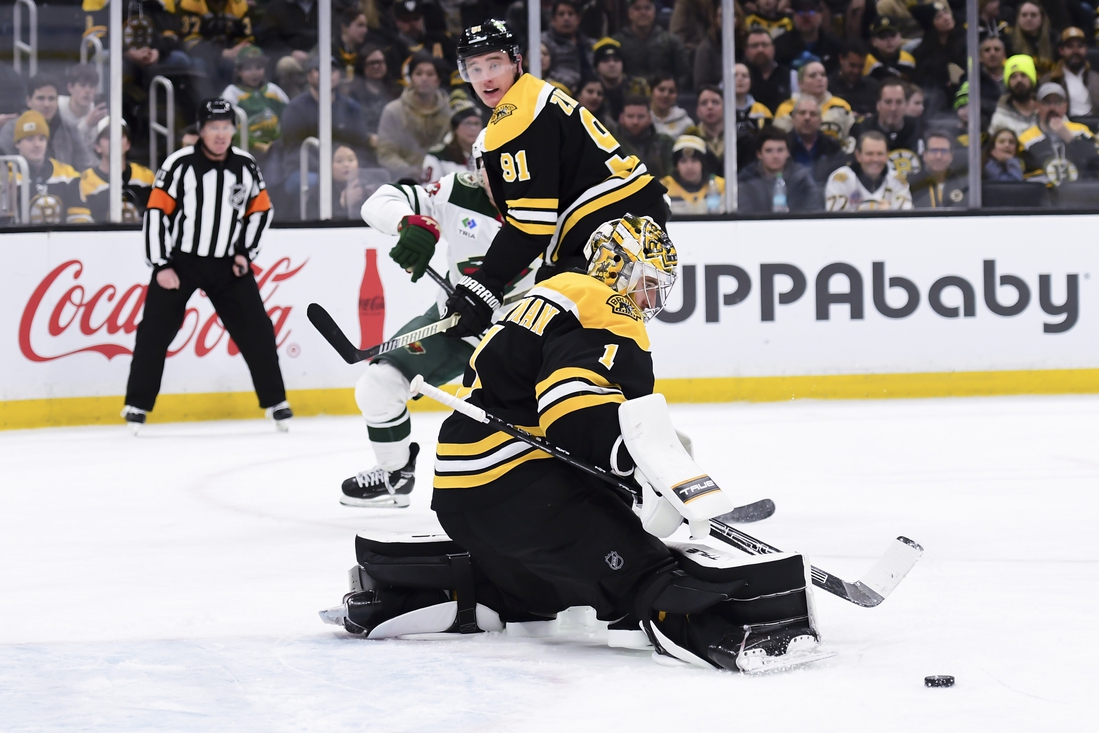 Minnesota recorded the first five shots on goal before Boston surged for the rest of a scoreless first. Fleury made 14 saves, including a flashing glove save on Pavel Zacha’s open chance coming down the slot at 10:25.