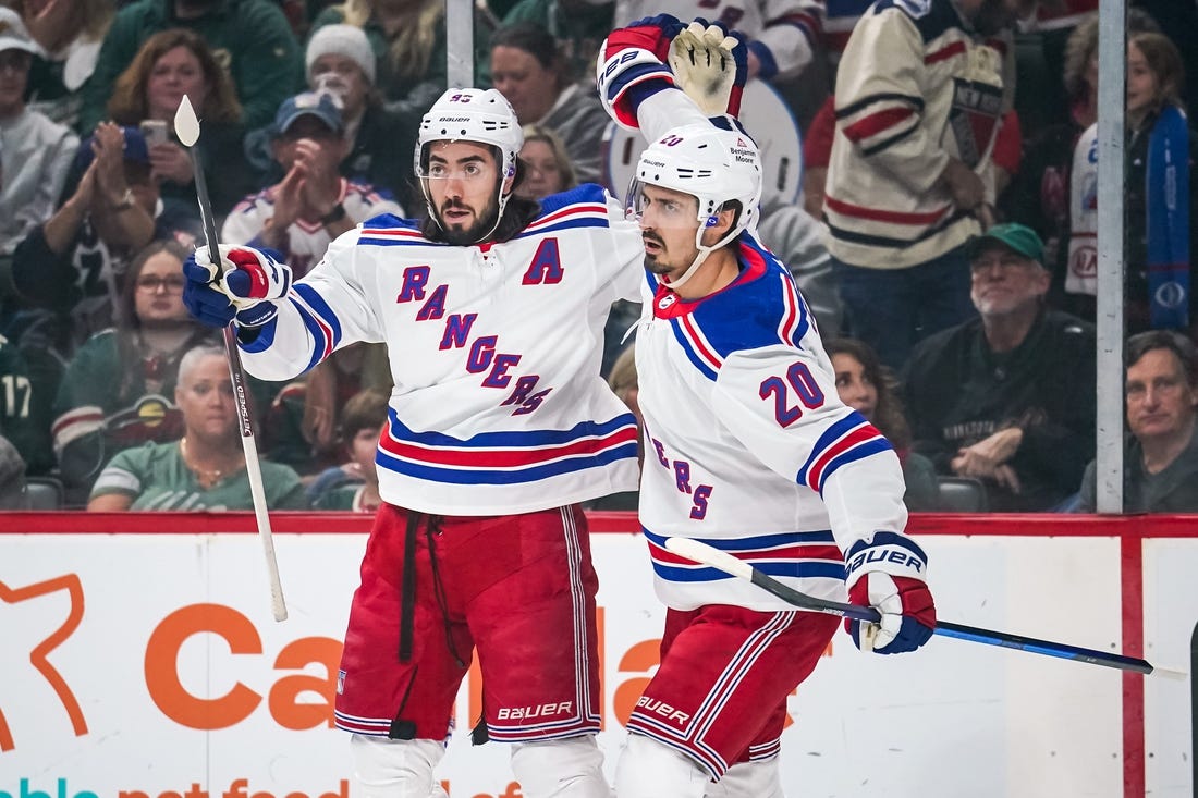 Artemi Panarin tallied a goal and three assists and Chris Kreider scored twice. Adam Fox and Vincent Trocheck each notched a goal and an assist, and Alexis Lafreniere and Mika Zibanejad each added two assists.