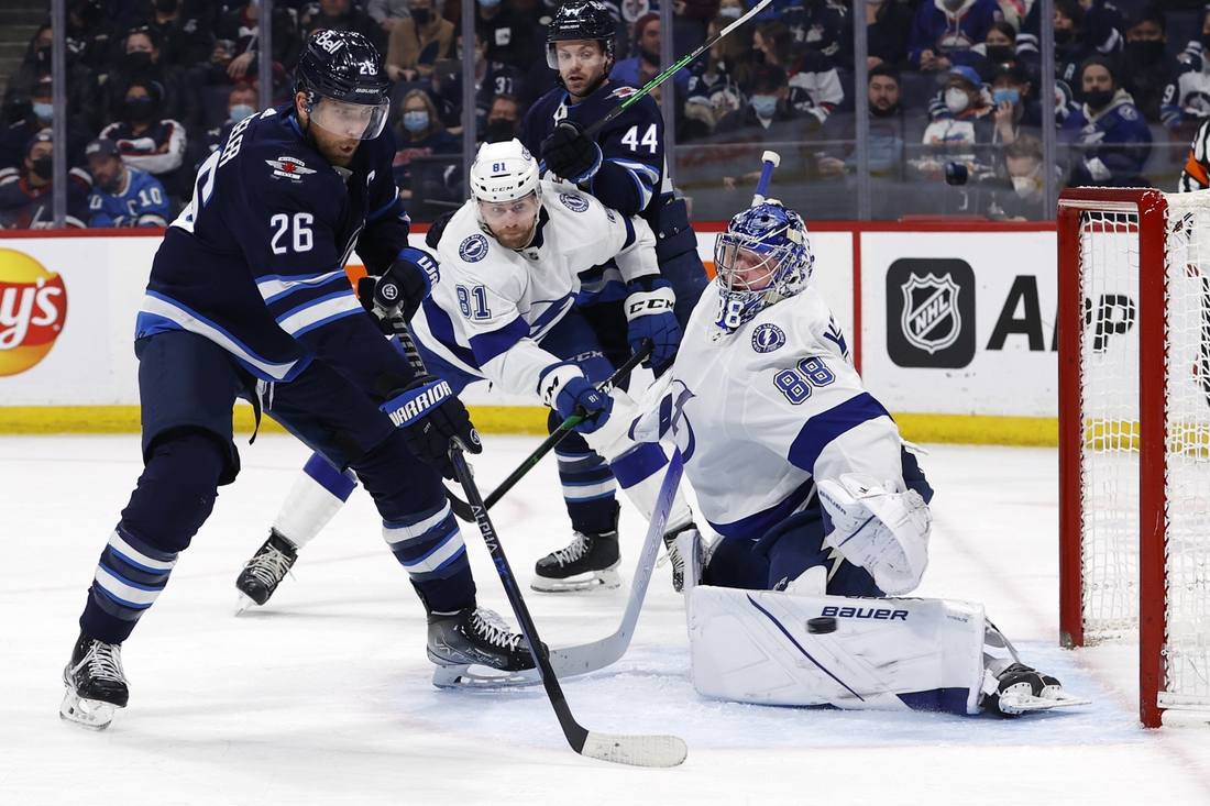 Tampa Bay cut its deficit in half with 8:10 remaining in the opening period. Following a Winnipeg turnover in the neutral zone, McDonagh became the fourth Lightning defenseman to score in the last three games.