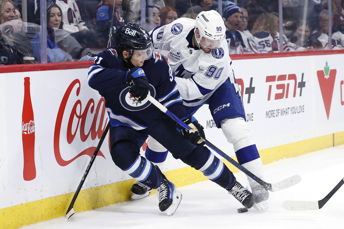 The Jets went back ahead 4:03 into the third when an open Iafallo chipped in an end-line pass from Nino Niederreiter on the power play. But the Lightning answered again, at 6:51 into the final period, when Kucherov poke-checked the puck off the stick of Namestnikov and past an unsuspecting Connor Hellebuyck (26 saves) to make it 4-4.