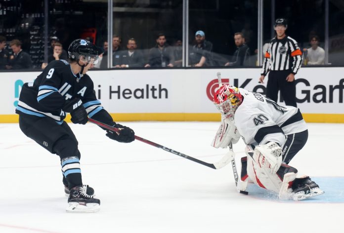 Utah would not go away, though. Logan Cooley, who scored 20 goals last season as a rookie with Arizona, got the visitors back within one after beating Kuemper in the crease midway through the third. Michael Kesselring and Dylan Guenther assisted on the 20-year-old’s first of the season.