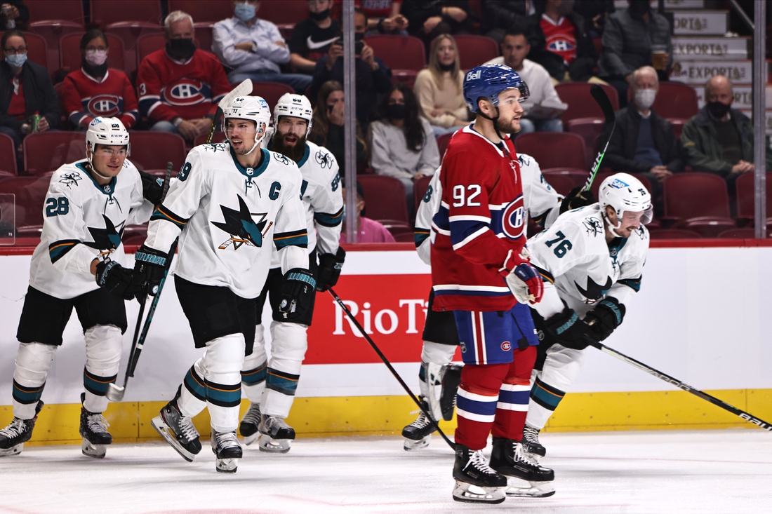 Timo Meier and Erik Karlsson each added a goal and two assists as the Sharks won for the 10th consecutive time against the Canadiens. Kevin Labanc also scored and Logan Couture had two assists.