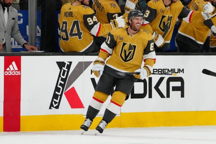 Vegas took a 1-0 lead at the 10:45 mark of the first period on Karlsson’s fourth goal of the season. Karlsson broke down the left wing on a rush and took a pass from Pavel Dorofeyev at the edge of the left circle, where he roofed a wrist shot to extend his point streak to eight games, the longest of his career.