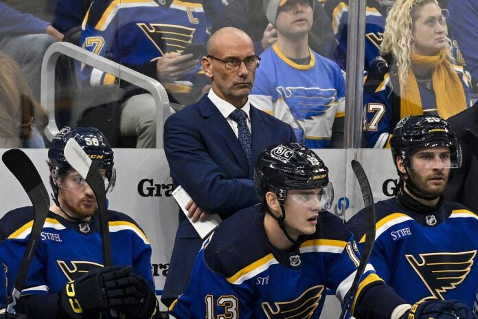 The Blues doubled their lead 1:57 into the second period by scoring on the rush. Zachary Bolduc took a pass from Justin Faulk, broke in on right wing and shoveled the puck toward the net.