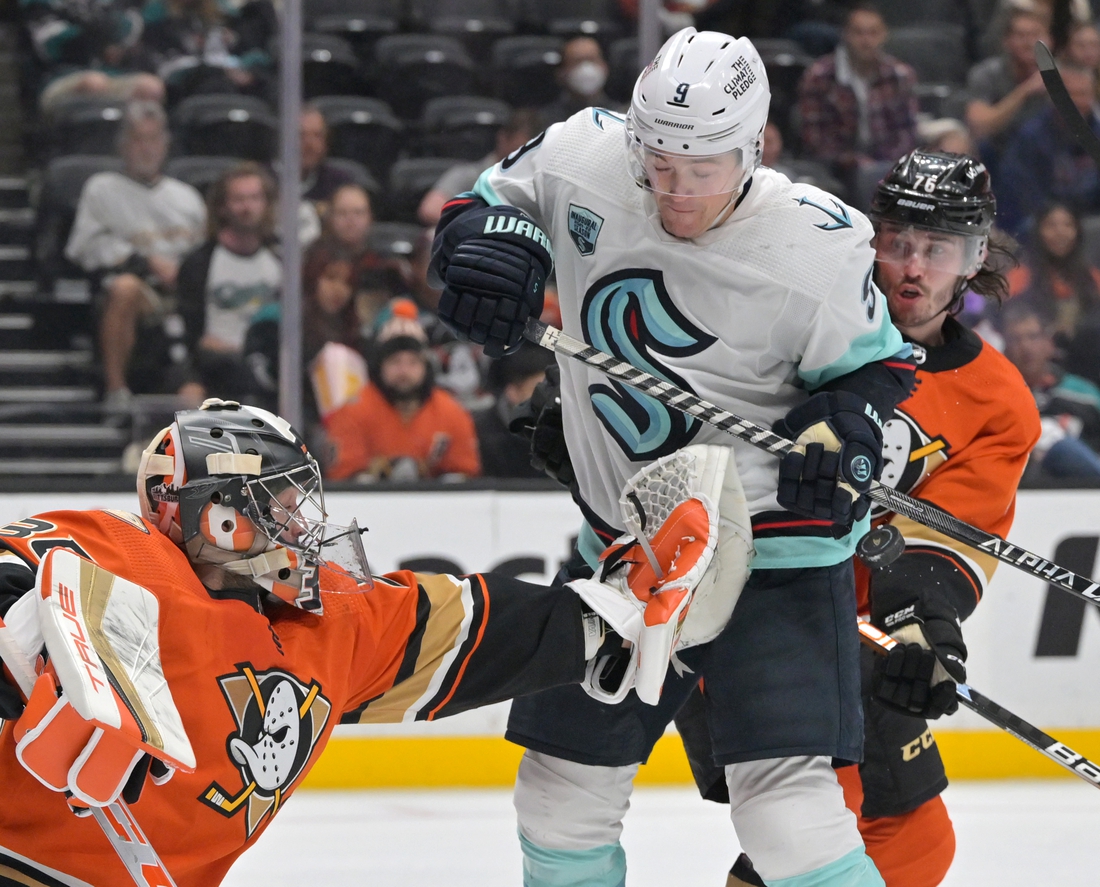 The Kraken tied it at 13:35 of the second after an Anaheim clearance attempt deflected off a linesman’s skate. Gourde recovered the puck and sent a backhanded pass to Donato for a wrist shot that beat Gibson from between the top of the faceoff circles.