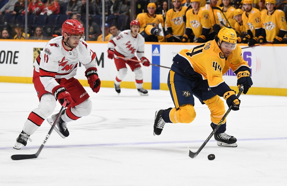 Carolina appeared to halve the deficit both late in the second period and early in the third, but both goals were negated by successful challenges from Nashville. Brady Skjei’s apparent goal was taken off the board due to goaltender interference, while fellow defenseman Brent Burns’ goal was immediately waved off for an offside call.