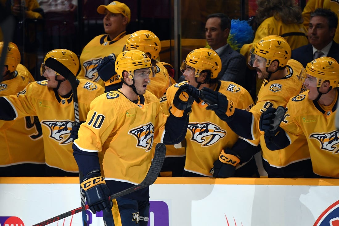 Sissons opened the scoring with a short-handed goal at 10:24 of the second period. Cole Smith picked off a drop pass by the Kraken’s Oliver Bjorkstrand in Seattle’s offensive zone and backhanded a pass ahead to Sissons, who picked up the puck just over the blue line. Sissons shrugged off a check by former Predator Eeli Tolvanen and lifted a backhander over a sprawling Grubauer from close range.