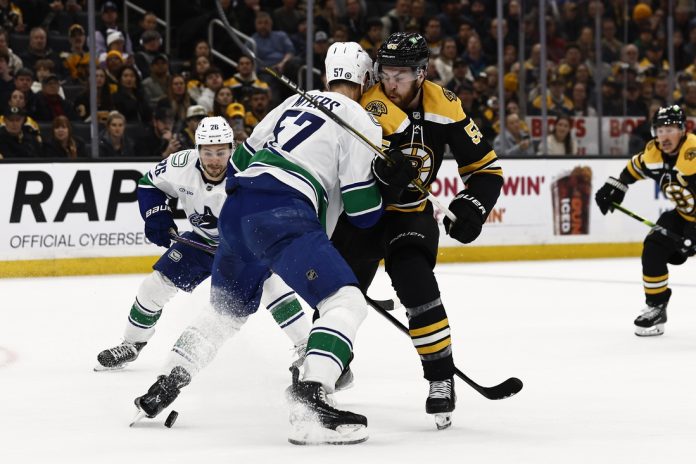 The Bruins had a 32-15 edge in shots on goal but finished 0-for-3 on the power play compared to the Canucks’ 1-for-2.