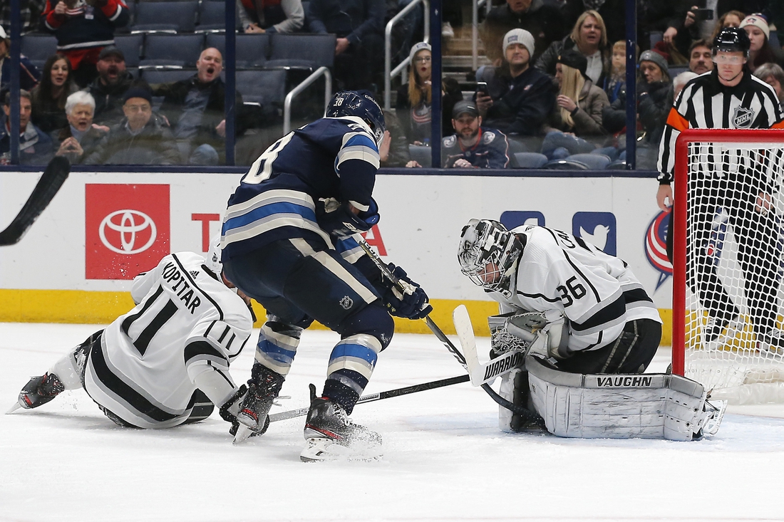 Given new life, Los Angeles ended the contest after Arvidsson elevated his backhand shot past Elvis Merzlikins (39 saves) on a breakaway. Arvidsson, who has 18 goals on the season, opened the scoring with six minutes remaining in the second period and then forged a 3-3 tie with 3:46 left in the third.