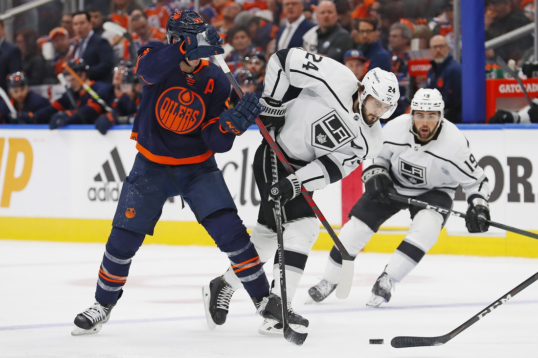 Phillip Danault scored the game-winning goal late in the third period to cap a two-point night and led the visiting Los Angeles Kings to a 4-3 victory over the Edmonton Oilers on Monday in the opener of their Western Conference first-round series.