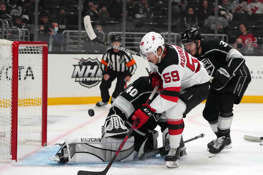 Bratt’s goal 3:19 into the third period drew the visitors even. The Kings entered the New Jersey zone on an odd-man rush, but Andreas Johnsson intercepted a pass. The puck went to Nico Hischier, who immediately fired a breakaway pass to Bratt. He juked and jived before depositing a forehand deke for his second tally of the campaign.