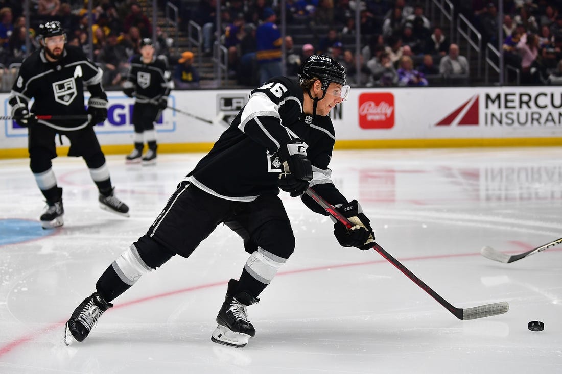 The Kings dominated from the drop of the puck and were rewarded at the 14:22 mark with Lizotte’s first goal in 20 games, a deflection of Alex Iafallo’s shot.