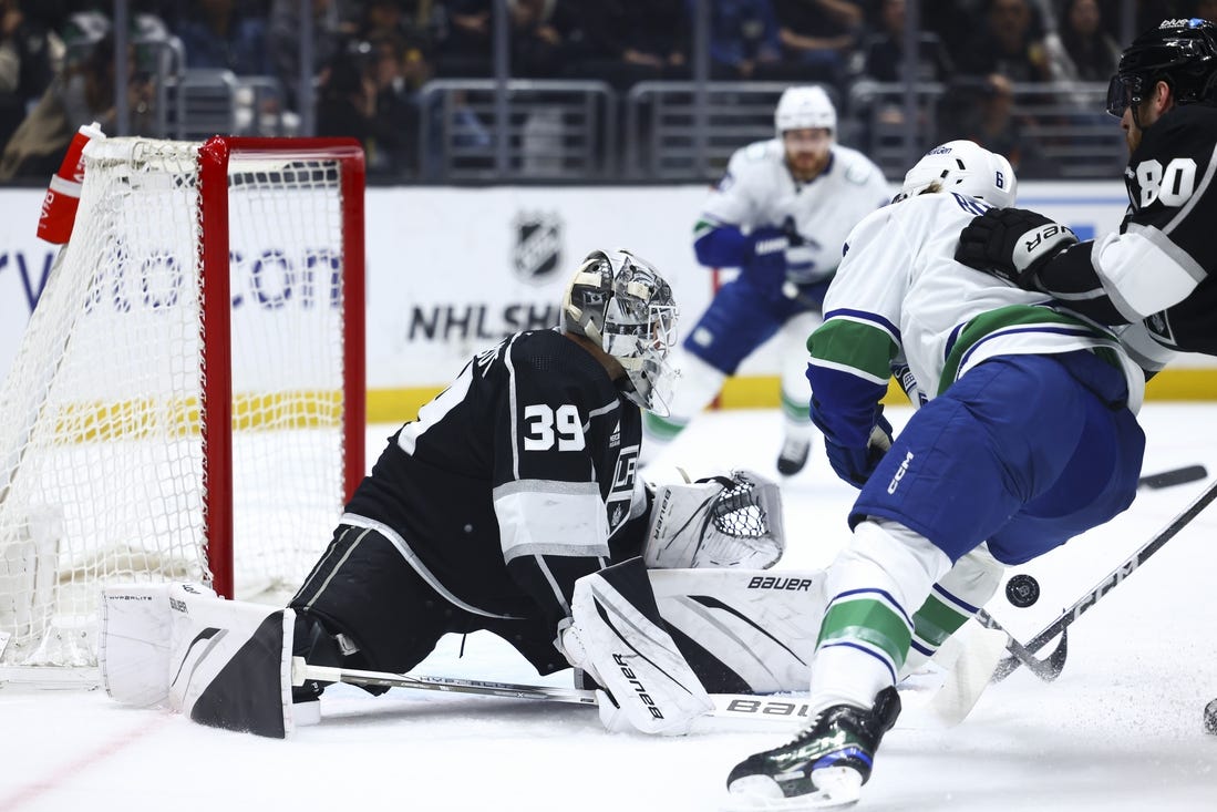A speedy Fiala snuck behind Carson Soucy to corral a loose puck in front of the net, then outmuscled the Canucks defenseman for possession. Fiala got his own rebound and scored to give Los Angeles a commanding 4-1 lead at 8:49 of the second.
