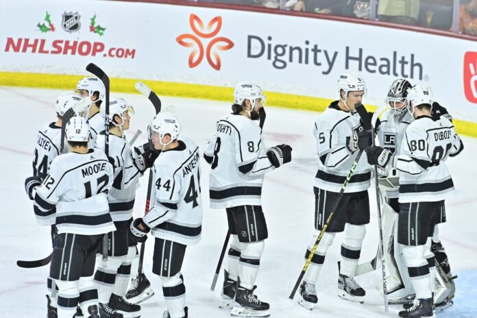 The Kings made it 2-0 at 8:20 of the first period when Quinton Byfield stole a pass in the Arizona zone, held off two defenders and then backhanded a centering pass to Kopitar for the one-timer.