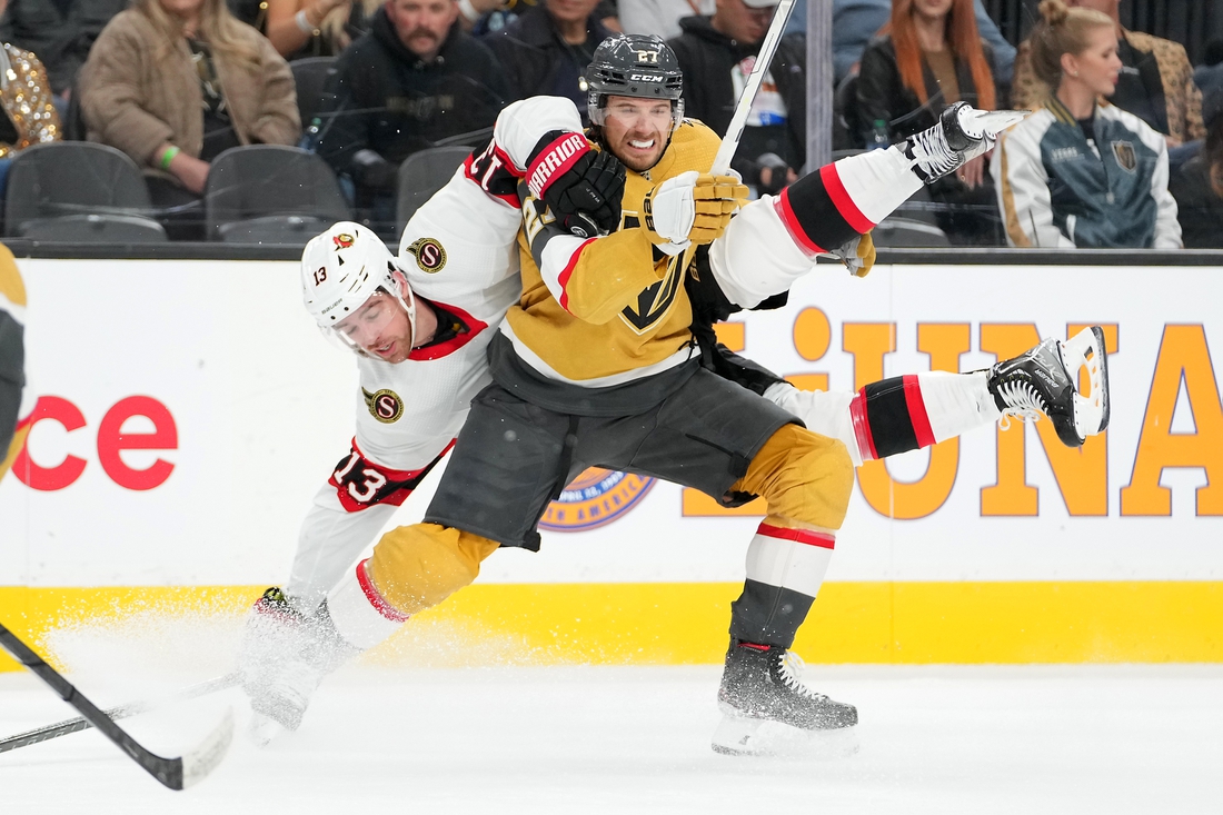 The Senators, coming off a wild 8-5 loss at Arizona on Saturday, had a chance to take the lead early in the third period but Lehner came up with a glove save on Zach Sanford’s point-blank wrist shot from the low slot. Ottawa outshot Vegas, 13-2, over the first 11 minutes of the third period, holding the Golden Knights without a shot on goal for over nine minutes during one stretch.