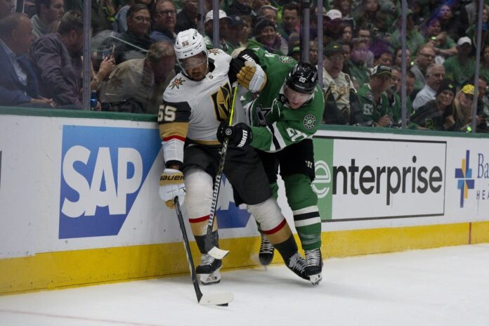 Dallas took a 1-0 lead on a power play at the 16:47 mark of the first period. Robertson fired a wrist shot from the top of the right circle past a Jamie Benn screen and through Thompson’s pads for his second goal of the playoffs and the seventh in eight career playoff games against the Golden Knights.