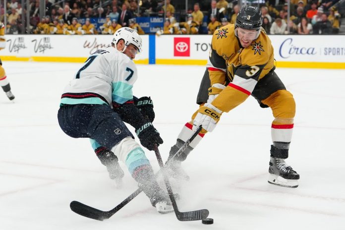 The Kraken pulled Daccord for an extra attacker with 1:57 remaining and had a chance to tie it with 19 seconds left, but Golden Knights defenseman Brayden McNabb made a diving save to turn away Brandon Montour’s jam try by the right post to seal the victory.