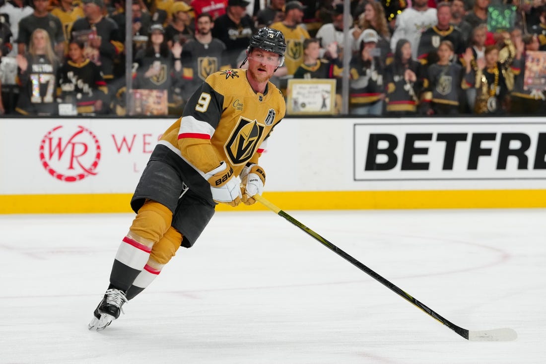 Vegas Golden Knights forward Jack Eichel briefly left Game 2 of the Stanley Cup Final late in the second period on Monday night after sustaining an apparent right shoulder injury, but he returned at the start of the third period.