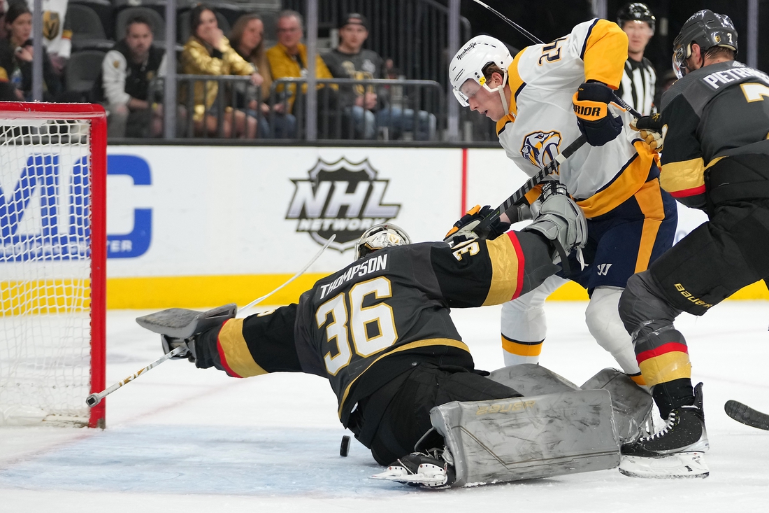 Chandler Stephenson and Evgenii Dadonov each had a goal and two assists and Logan Thompson made 35 saves as the Vegas Golden Knights cruised to a 6-1 victory over the Nashville Predators in Peter DeBoer’s 1,000th game as an NHL head coach on Thursday night in Las Vegas.