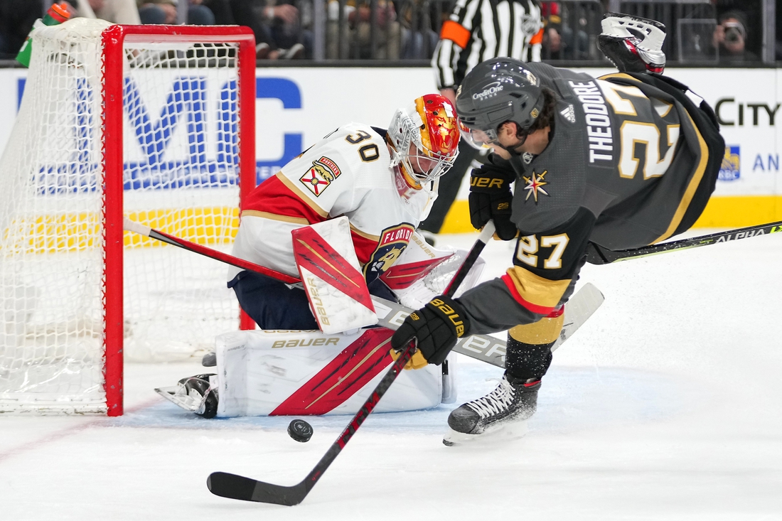 Florida took a 1-0 lead at the 8:04 mark of the first period. Verhaeghe beat Alex Pietrangelo to a rebound on the right side of the goal and then backhanded in a rebound for his 21st goal of the season.