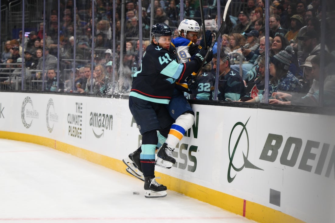 Evans has six goals, 28 assists and 185 hits in 109 career games over two seasons with the Kraken. He played in 36 contests during the 2023-24 campaign, scoring one goal and adding eight assists.