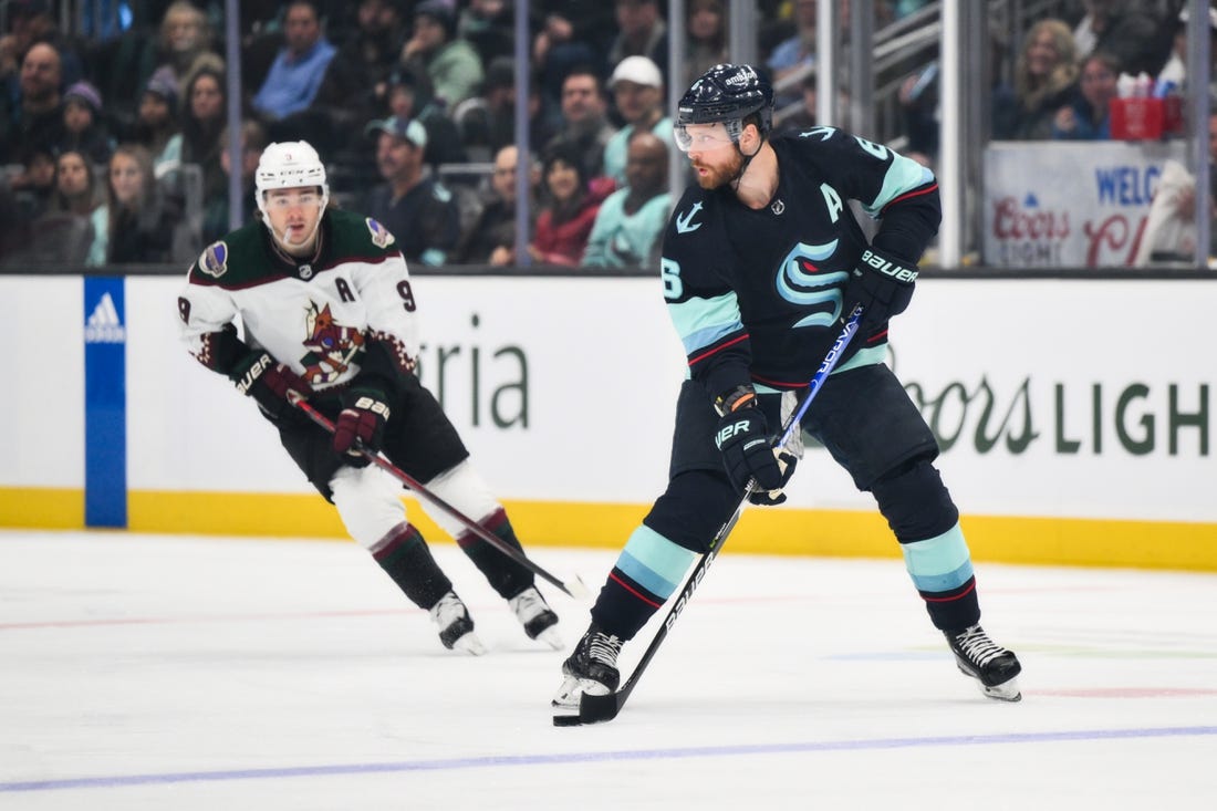 Seattle extended its lead just 28 seconds into the second. Dunn’s shot from the high slot snuck through Vejmelka’s pads, with the puck trickling toward the goal line. Coyotes defenseman Patrik Nemeth tried to reach over his goalie and knock the puck off the line, but his backhander hit the left post and went in.