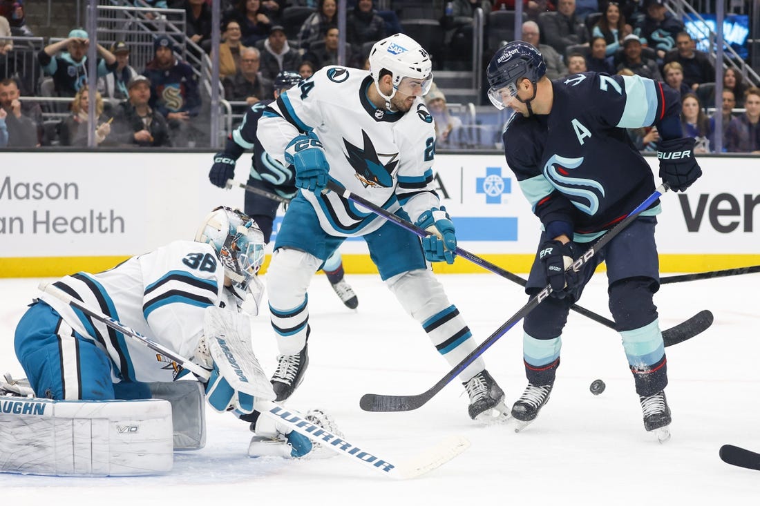 The Kraken tied it on Burakovsky’s power-play goal at 9:44. The Sharks regained the lead on Meier’s man-advantage tally at 18:53.