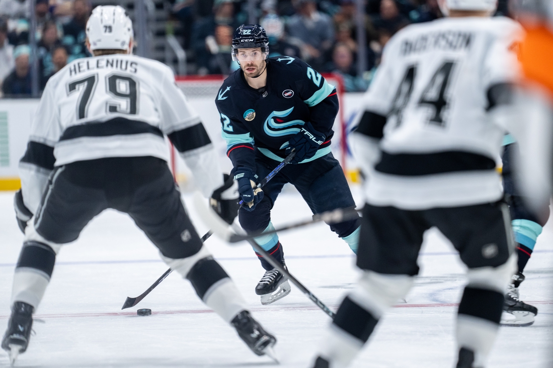 The score was tied 2-2 after a first period in which the Kraken had a 15-8 edge in shots.