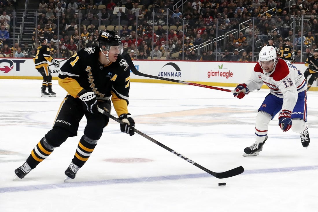 Matheson, a former Penguins defenseman, opened the scoring at 9:05 of the first period when he capitalized on a turnover by Letang. From the slot, Matheson fired off a short-side shot using Tanner Pearson as a screen for a 1-0 Canadiens lead.
