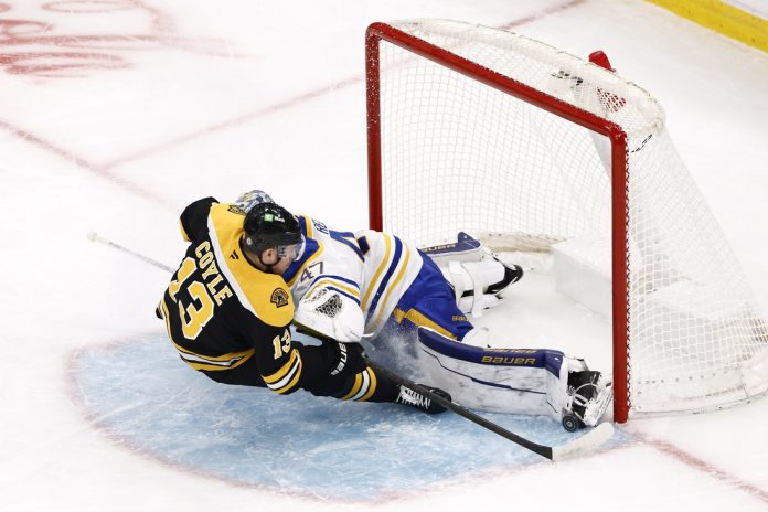 Boston drew a late power play as Sam Lafferty tripped newcomer Oliver Wahlstrom with 3:45 to go. After Buffalo goaltender James Reimer made a point-blank save on Geekie’s initial shot from the slot, Geekie one-timed a centering pass from David Pastrnak as the man advantage ended.