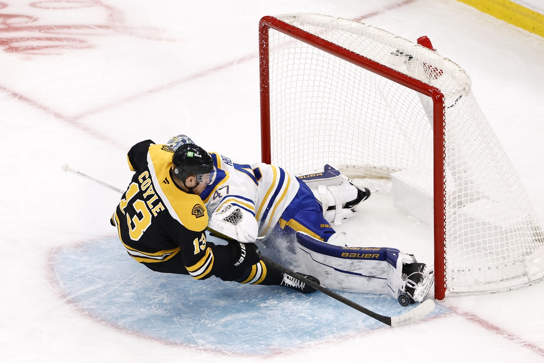 Geekie appeared to put Boston back in front with a wrist shot goal off the rush with 12:47 left, but Buffalo successfully challenged for offsides.