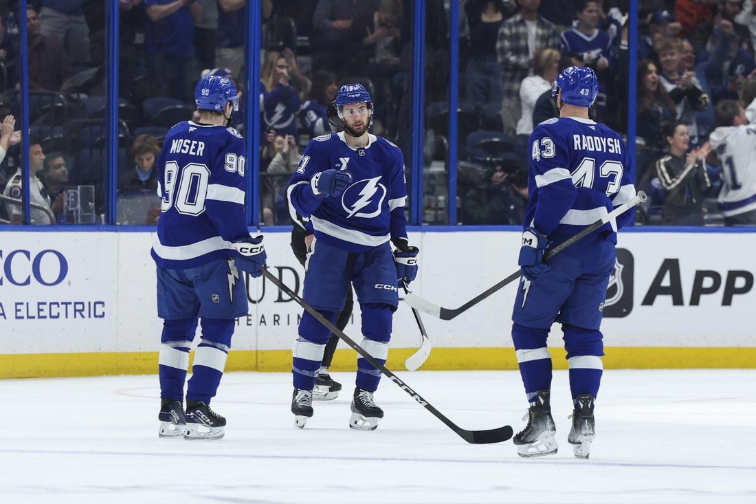 On the game’s first power play, Tampa Bay moved the puck crisply. In the final seconds of it, Raddysh hammered a shot that caromed off Faulk at 9:12 of the opening period for a 2-0 lead.