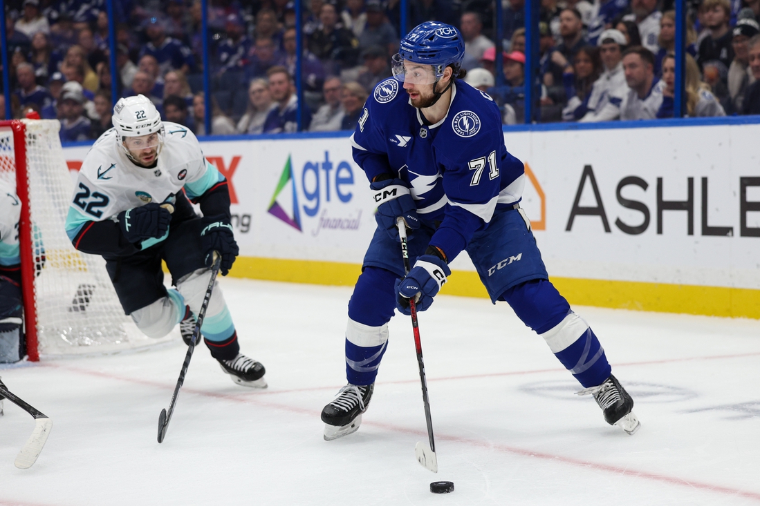 Nikita Kucherov and Luke Glendening scored 1:43 apart in the third period. Nick Paul potted an empty-netter as the Lightning improved to 19-7-2 on home ice and 7-0-1 all-time against the Kraken.