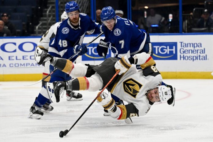 Tampa Bay’s Nicholas Paul scored the go-ahead goal with 1:13 remaining in regulation as the Lightning won a wild 5-4 affair over the visiting Vegas Golden Knights on Thursday night.