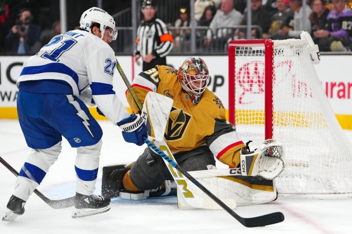 The Golden Knights pulled Lindbom for an extra attacker with 2:10 remaining, and Kucherov sent Hagel in for an empty-netter with 46.5 seconds left to seal the win.